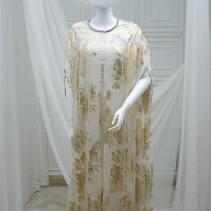 A distinctive black chiffon abaya, handcrafted with exquisite detail.