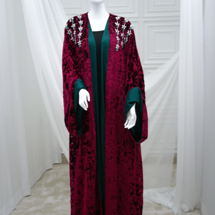 A chiffon abaya, handcrafted and adorned with luxurious stone embellishments