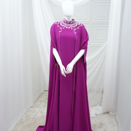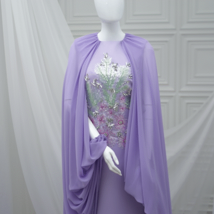 Silk Satin Gown — Hand-Embellished with Exquisite Dark Gray Gemstones