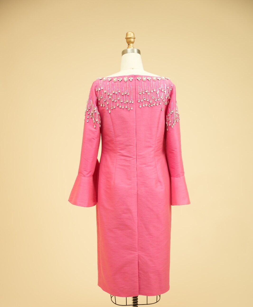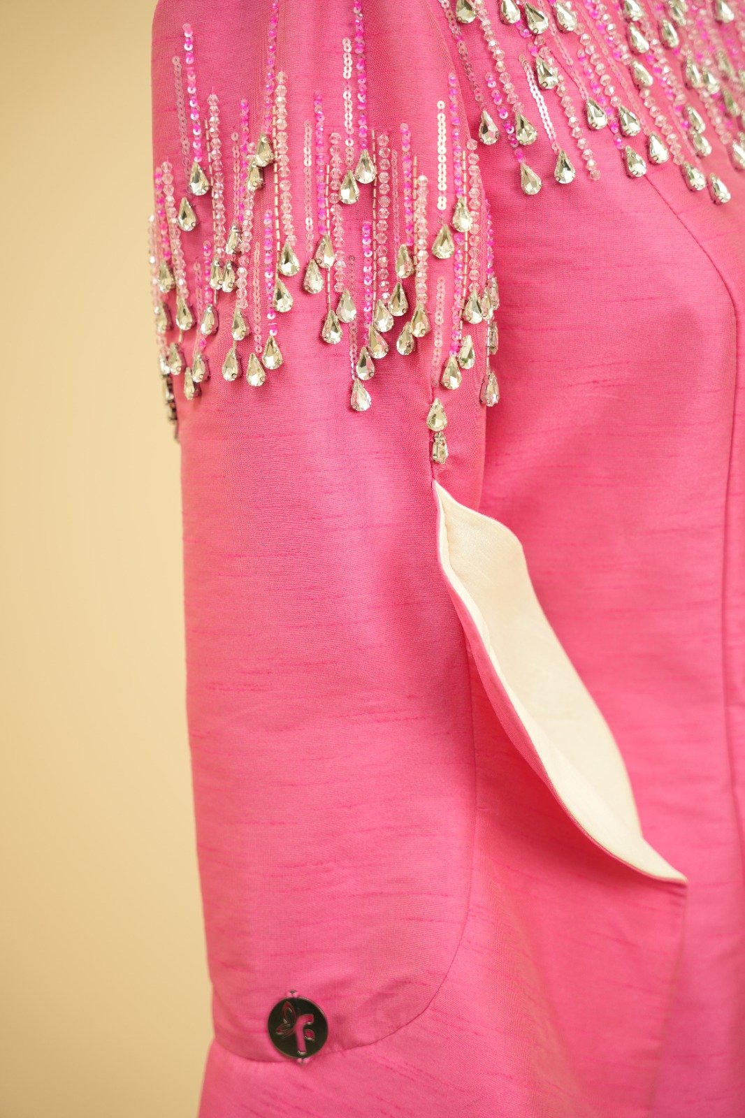 Dress made of silk taffeta, hand-embellished with sequins and beads.