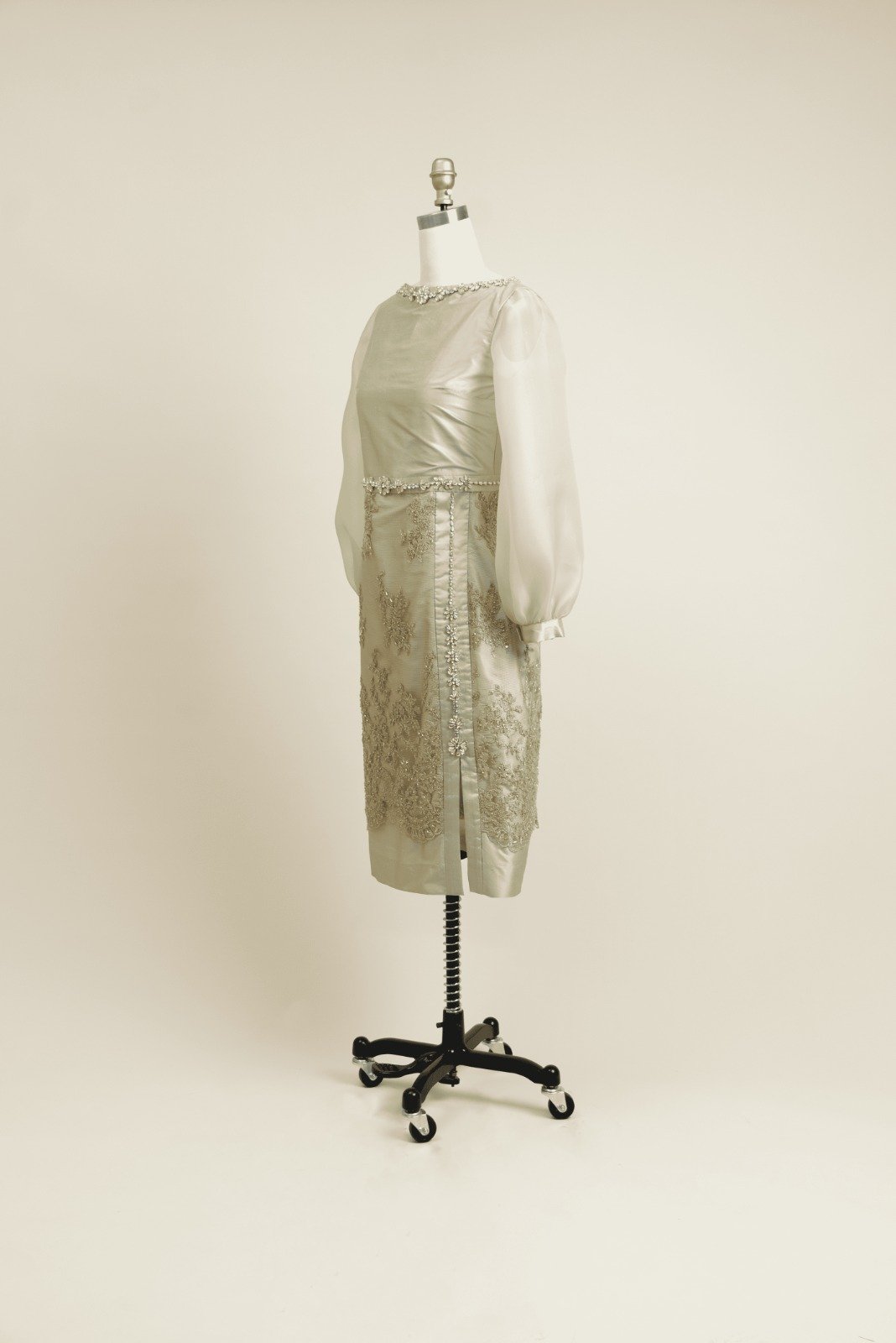 Be the first to review “Dress made of soft silk taffeta with French lace and organza sleeves” Cancel reply