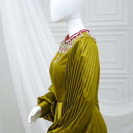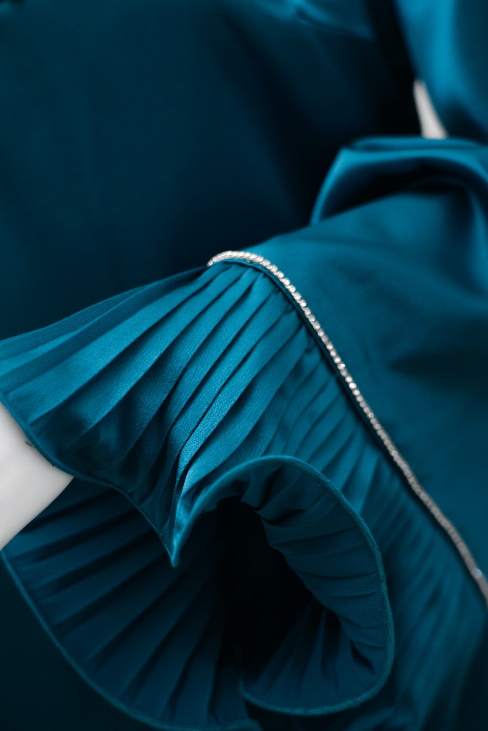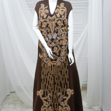 Silk Satin Gown – Hand-Embellished with Multicolored Luxury Stones